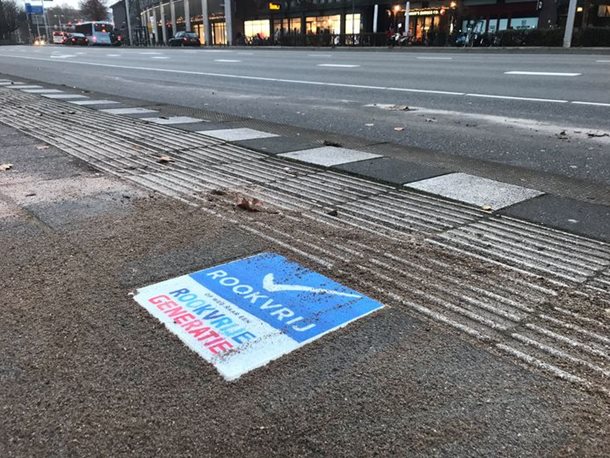 Samen met gemeente Amersfoort zijn we gestart met het rookvrij maken van alle bushaltes in Amersfoort. Bij elke halte wordt een blauwe stoeptegel van de Rookvrije Generatie geplaatst, waarop staat aangegeven dat het om een rookvrije zone gaat.